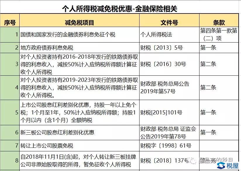 个人所得税(与金融保险相关的)减免税优惠汇总