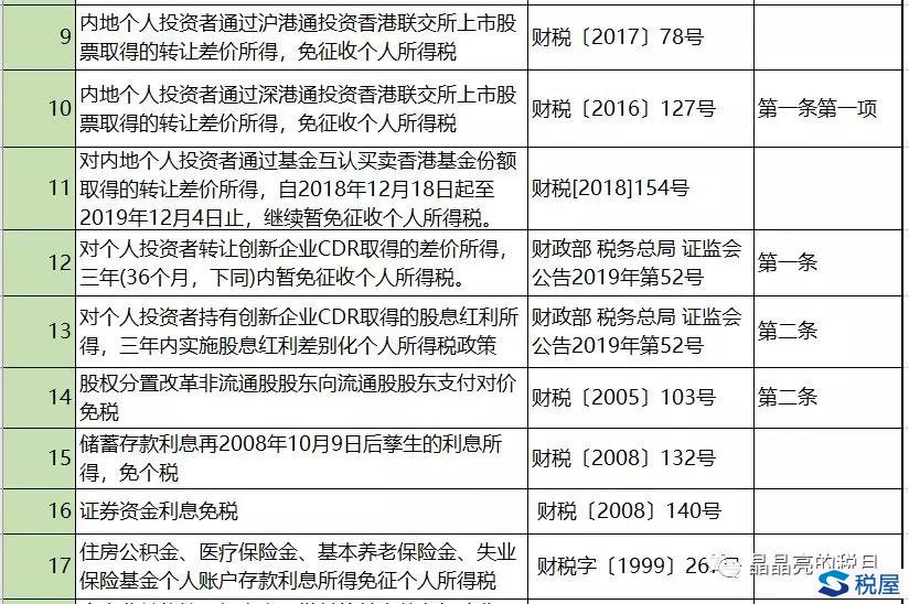 如果加上这两条免税规定,目前个人所得税减免税中,与金融保险相关的优惠政策应该是24条。