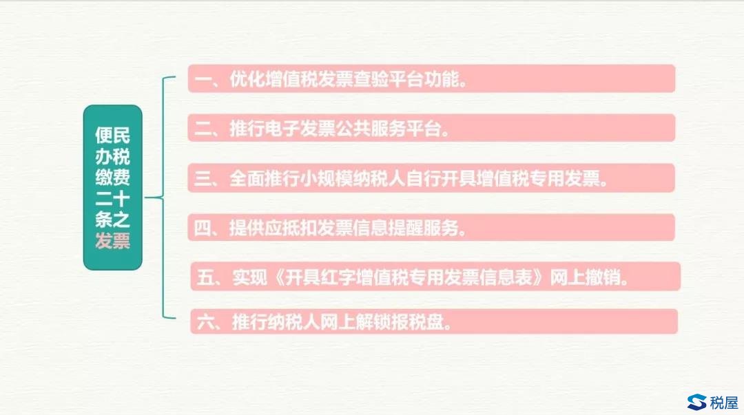 两个平台、小规模全面自开专票、应抵扣提醒、网上办理解锁及红字专票信息表撤销。