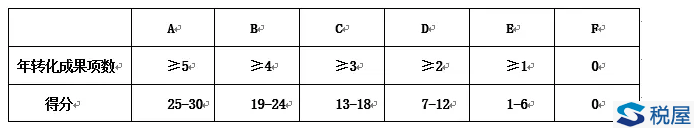 高新技术企业认定评审主要是对创新能力进行考量,评审会从知识产权、科技成果转化能力、研究开发组织管理水平、企业成长性等四项指标进行评价。各级指标均按整数打分,满分为100分,综合得分达到70分以上(不含70分)为符合认定要求。其中,科技成果转化能力分值占到了30分,得分分为A——F六档: