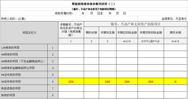 ②第2列“服务、不动产和无形资产扣除项目”“期初余额”应为“0”(不考虑期初余额)。