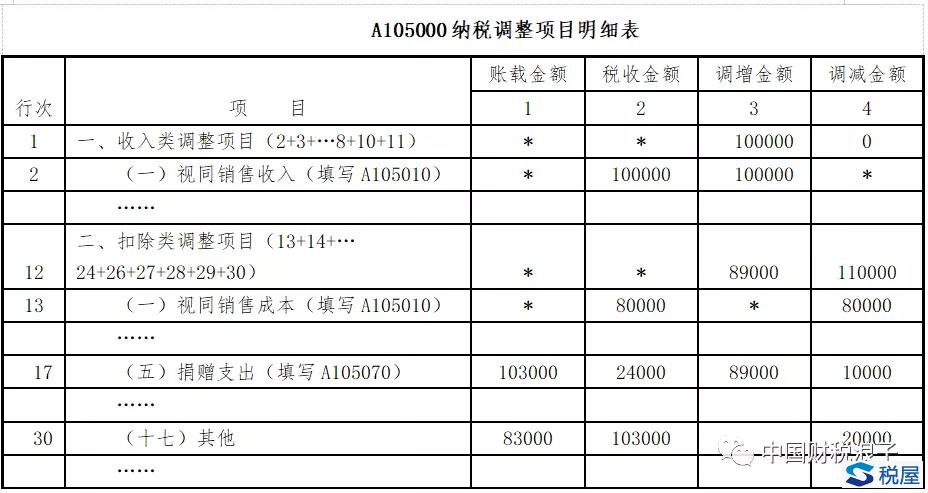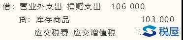 税收分析:该项捐赠行为的增值税与企业所得税均要做视同销售处理。此项捐赠行为符合9号公告的规定,捐赠货物可以免征增值税;捐赠支出允许在企业所得税税前全额扣除。企业开具增值税普通发票10.3万元,通过填写增值税申报表实现增值税免税。自产货物企业所得税视同销售收入按照公允价值10万元确定,视同销售成本为生产成本8万元。