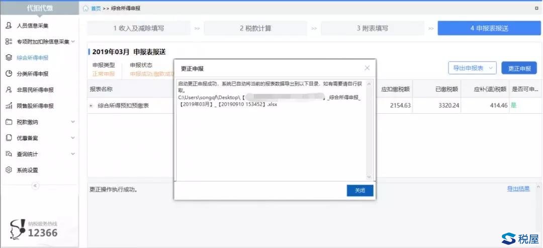 ③点击【更正申报】按钮,启动更正申报,系统提示往期错误更正申报成功后,需要对后续税款所属期的综合所得预扣预缴申报表进行逐月更正。
