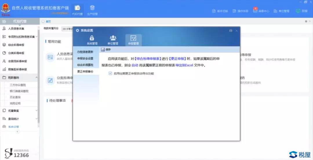 注:该导出备份功能可以通过【系统设置】-【申报管理】-【更正申报备份】中设置,系统默认启用该功能,建议大家不要轻易将该功能关闭,否则将无法找回原始记录。