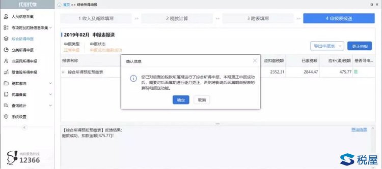 ③点击【更正申报】按钮,启动更正申报,系统提示往期错误更正申报成功后,需要对后续税款所属期的综合所得预扣预缴申报表进行逐月更正。