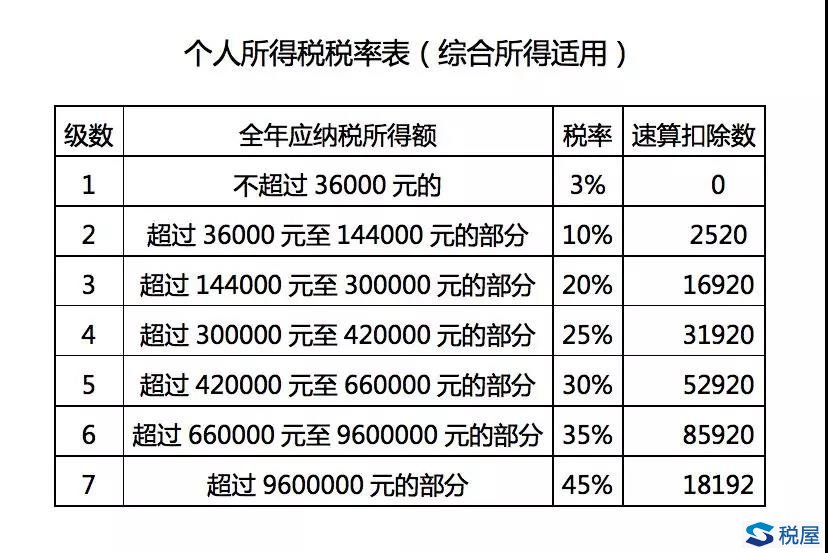 (1)不并入当年综合所得,以全年一次性奖金收入除以12个月得到的数额,按照按月换算后的综合所得税率表(月度税率表),确定适用税率和速算扣除数,单独计算纳税。