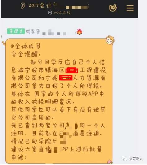 比如:西北工业大学明德学院学生爆料,多个班学生在个人所得税APP上有工资记录,但他们从未接触过该公司,怀疑个人信息被泄漏,学生称联系导员让自行处理。多次拨打学校电话但无人接听,随后学生透露,学校开始处理