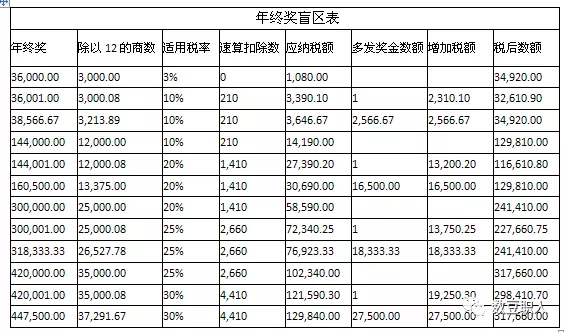年终奖30万,根据年终奖盲区表,属于盲区。所以为避免陷入盲区,需要将年终奖一部分划入工资薪金计税,剩下部分单独按照年终奖计算个税。(根据个税年终奖盲区表格)