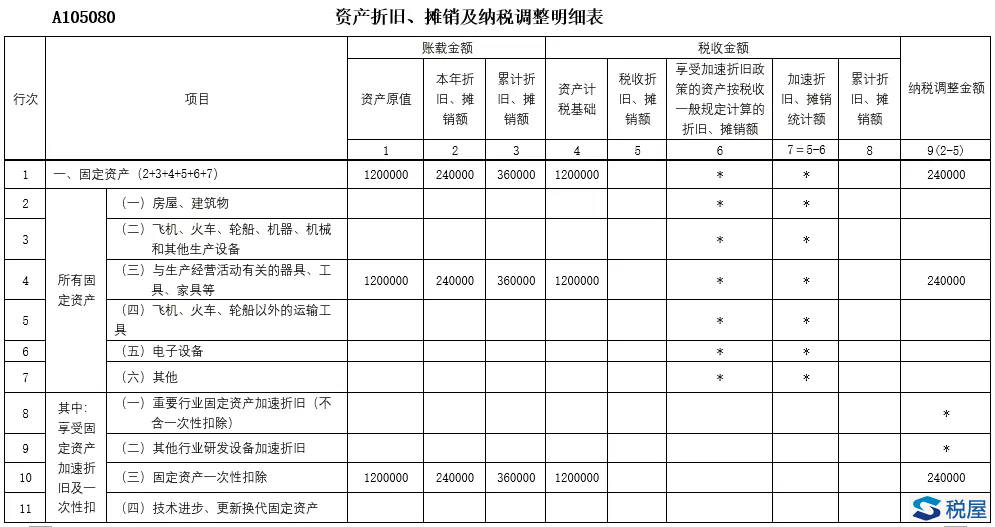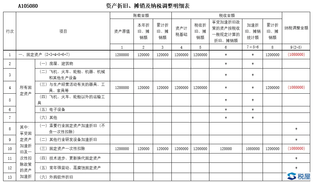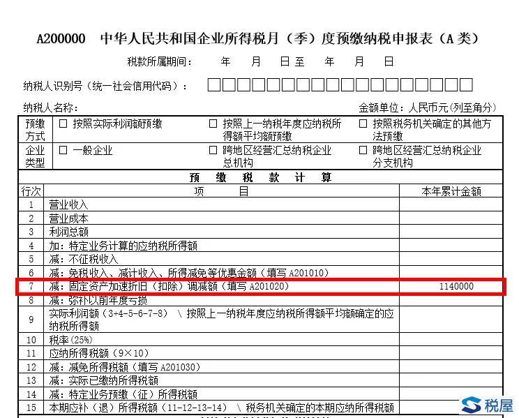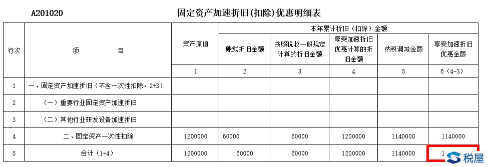 企业享受扩大产能新购置的相关设备一次性计入当期成本费用在企业所得税税前扣除政策的,月(季)度预缴申报时应在《固定资产加速折旧(扣除)优惠明细表》(A201020)第4行“二、固定资产一次性扣除”填报相关情况;年度纳税申报时应在《资产折旧、摊销及纳税调整明细表》(A105080)第10行“(三)固定资产一次性扣除”填报相关情况。