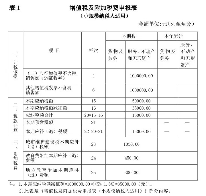 根据《国家税务总局关于增值税消费税与附加税费申报表整合有关事项的公告》(国家税务总局公告2021年第20号)填写相关申报表,如表1~表 3。