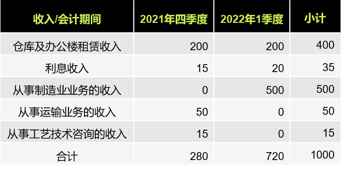 A企业为钢铁制造业企业,自2021年10月1日开始筹建,自2022年1月1日开始正式投产。A公司自设立至今的营业收入数据(单位:万元)为: