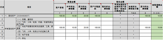 由于选择一次性税前折旧扣除政策,税法折旧100万元,会计折旧10万元,因此在所得税汇算清缴时A105080《资产折旧、摊销及纳税调整明细表》填列如下: