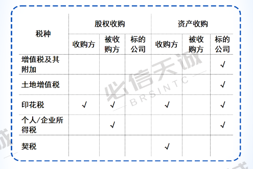 股权收购和资产收购作为两种常见的房地产项目收并购业务,其中股权转让和资产转让纳税义务人和其涉及的税种: