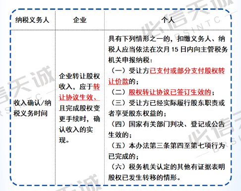 企业和个人股权转让对收入确认的时间