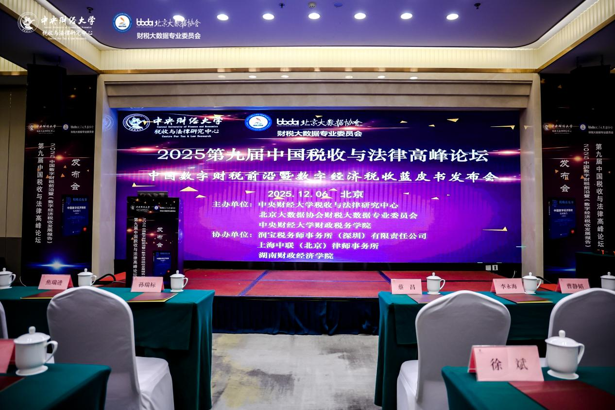 2025年12月6日,公司董事长王进,总经理助理、咨询部项目经理王京在北京福建大厦参加了由中央财经大学税收与法律研究中心主办的“2025第九届中国税收与法律高峰论坛-中国数字财税前沿暨数字经济税收蓝皮书发布会”。