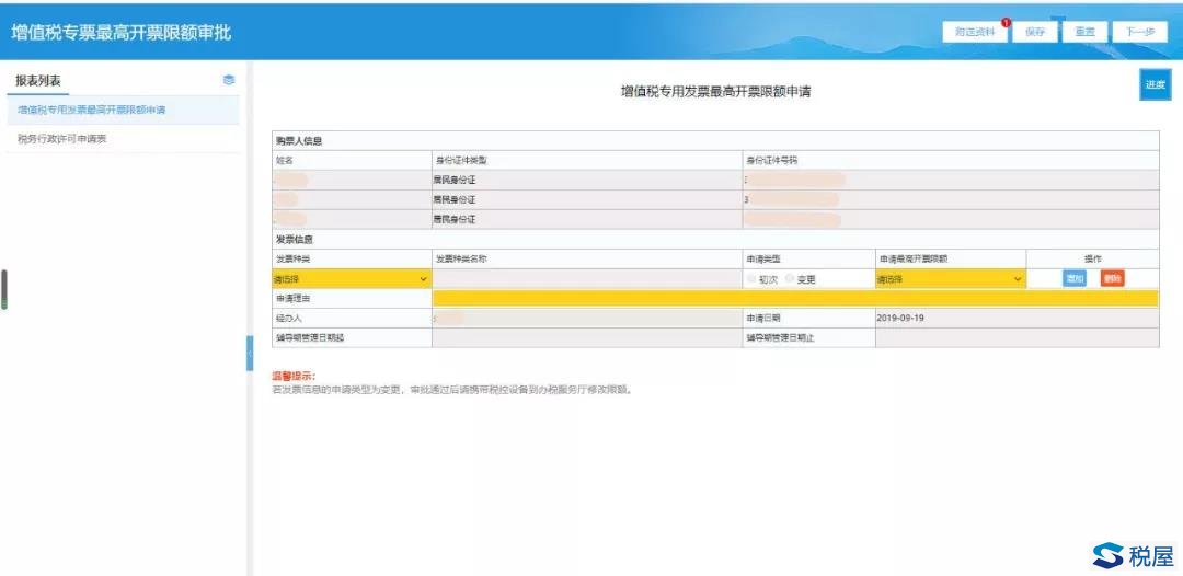 第六步:如实填写“增值税专用发票最高开票限额审批”申请表,等待最终审核结果。