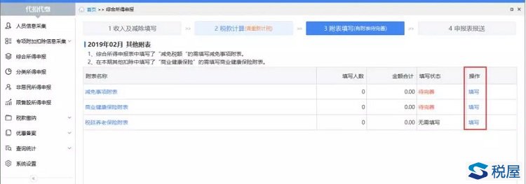 【1收入及减除填写】中如果填写了“减免税额”、“商业健康保险”或“税延养老保险”,需要在【3附表填写】中完善附表信息。