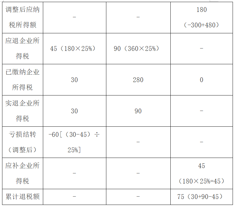 房地产开发A企业于2017年2月开始开发某地产项目,2019年11月项目全部竣工并销售完毕,12月进行土地增值税清算,整个项目共缴纳土地增值税1600万元,其中:2017年~2019年预缴土地增值税分别为300万元、500万元、200万元;2019年清算后补缴土地增值税600万元。2017年~2019年实现项目销售收入分别为30000万元、50000万元、20000万元,缴纳的企业所得税分别为30万元、280万元、0万元。该企业2019年度汇算清缴出现亏损,应纳税所得额为-300万元。企业若没有后续开发项目,欲申请退税,该如何计算?
