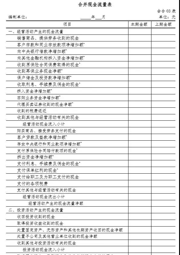 3.金融企业现金流量表中“回购业务资金净增加额”行项目(保险公司专用)在本表中的“收到其他与筹资活动有关的现金”行项目中列示。