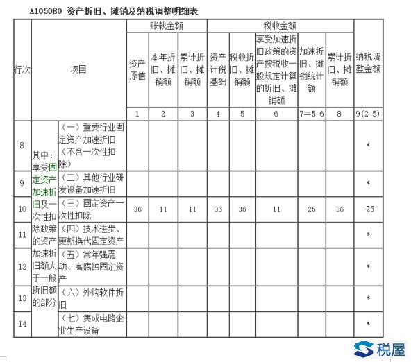 提醒3:当会计折旧金额小于等于税收折旧金额时,该项资产的“纳税调减金额”=“享受加速折旧优惠计算的折旧金额”-“账载折旧金额”。