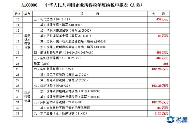 假若2019年度全年利润仅仅就是434万元,前四个季度已经预缴了100万元所得税,则汇算清缴的时候需要调减=36万元-11万元=25万元