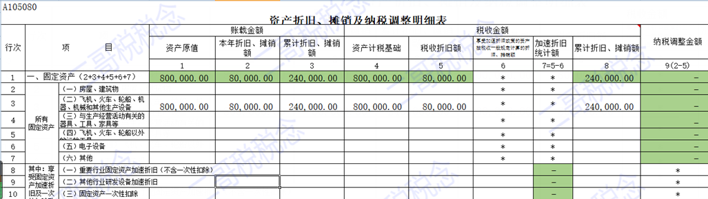 这个8万税法是不认的,也就是需要纳税调增来交税。这是有税折旧。