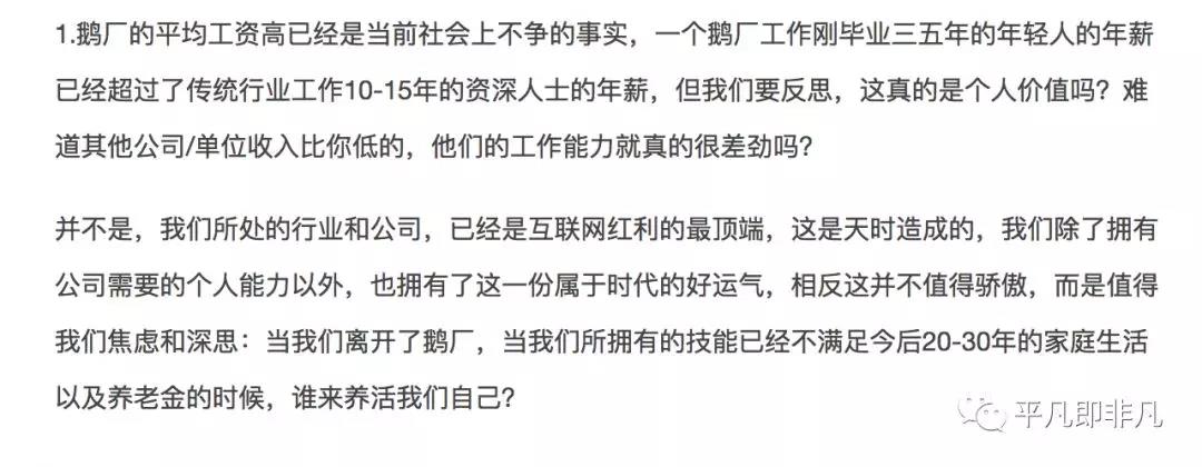 跨行业横向比较:不同行业的管理费用及工资水平对标是否有意义?在这一点上,我也曾疑惑—以某位地产大佬喜欢举的例子来看,一线城市特级教师的收入水平不足2万/月,而我们沉浸在行业发展带给我们的红利中始终不满自己的薪资水平,是不是膨胀了、是不是执迷不悟?其实,比房地产行业更在风口的金融、互联网行业也存在同样的困惑(附图为腾讯论坛中一段员工感受)。