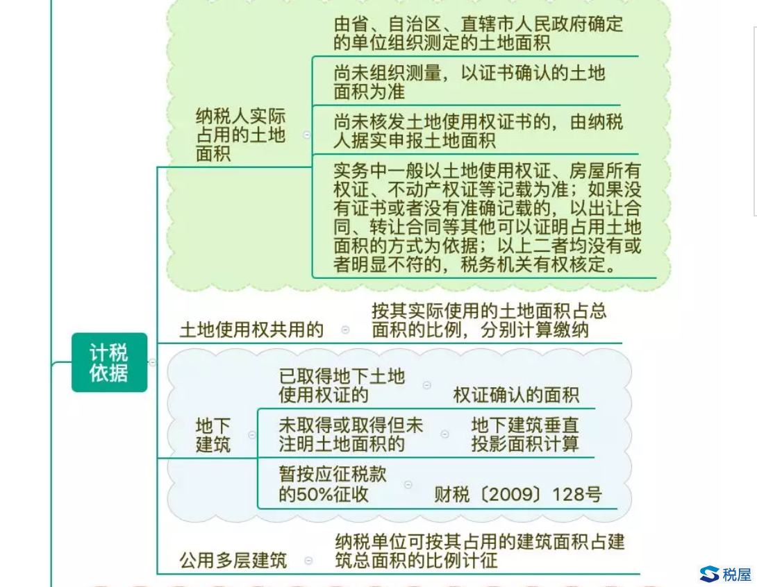 29.对在城镇土地使用税征税范围内单独建造的地下建筑用地,按规定征收城镇土地使用税。其中,已取得地下土地使用权证的,按土地使用权证确认的土地面积计算应征税款;未取得地下土地使用权证或地下土地使用权证上未标明土地面积的,按地下建筑垂直投影面积计算应征税款。对上述地下建筑用地暂按应征税款的50%征收城镇土地使用税。(财税〔2009〕128号)