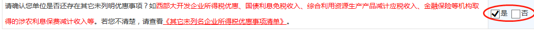注意:填写“其他需要企业选择确认信息表”时,在“请确认您单位是否还存在其它未列明优惠事项”选项中选择“是”。