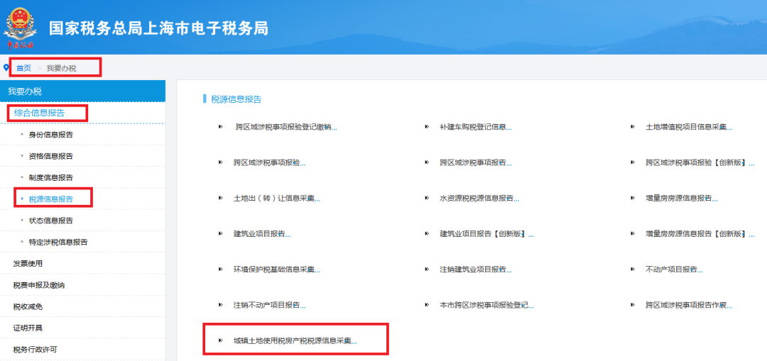 路径:我要办税-综合信息报告-税源信息报告-城镇土地使用税房产税税源信息采集