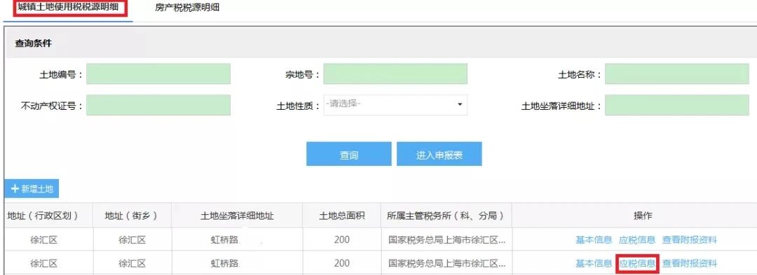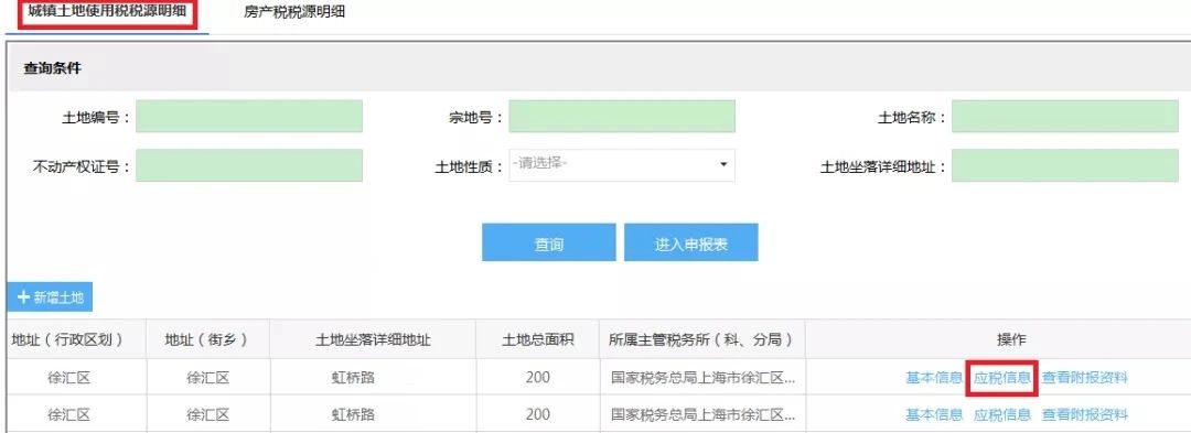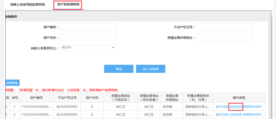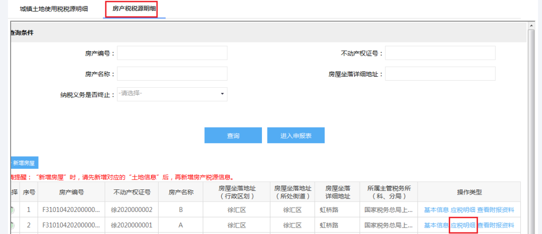 2.选择城镇土地使用税税源明细或房产税税源明细
