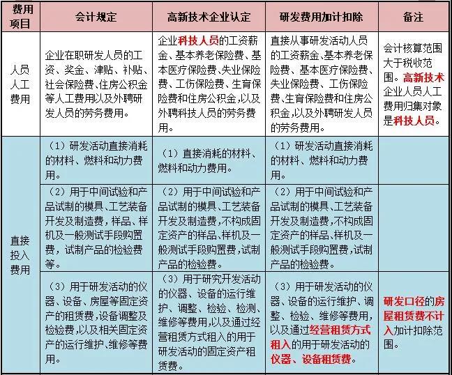 研发费用归集口径比对