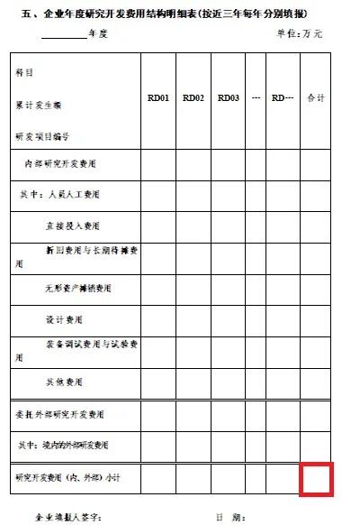 高企认定申请以单个研发活动RD为基本单位分别进行测度并加总计算,单个研发活动RD包括了直接研究开发活动和可以计入的间接研究开发活动所发生的费用。然后,汇总填写《高新技术企业认定申请书》(附件2)中的第五张表格“企业年度研究开发费用结构明细表”,最后形成三年的汇总数据。