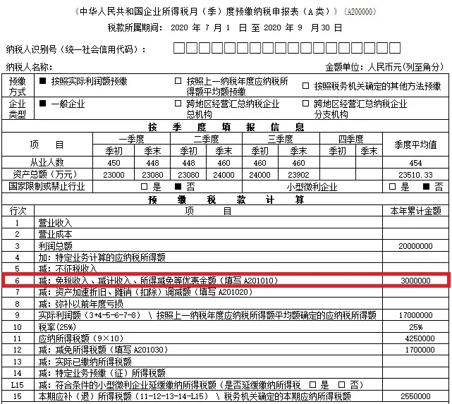(3)《中华人民共和国企业所得税年度纳税申报表(A类)》(A100000)