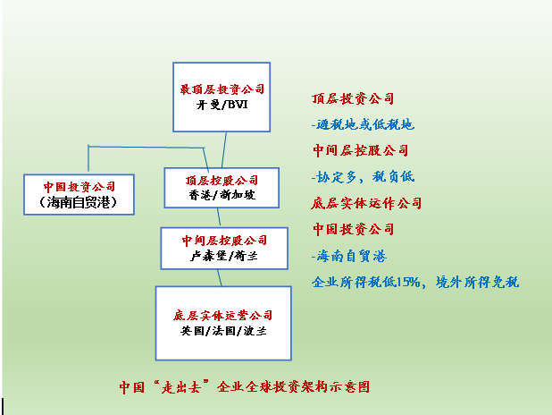 中国“走出去”企业如何搭建全球合法、有效的多层投资框架?以此获得更大的税收筹划空间?笔者根据自己多年参与中国成功“走出去”民企和国企实操经验,提炼出各个层级海外投资控股架构税务事项的要点、利弊及风险,分析“走出去”企业应综合考量税务事项及各方面因素,供读者参考。