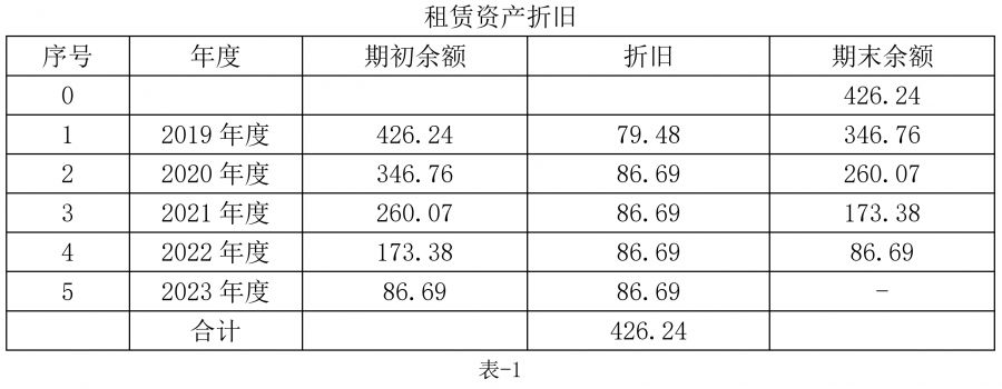 新准则下租赁资产折旧和和租赁负债摊销,如表-1和表-2: